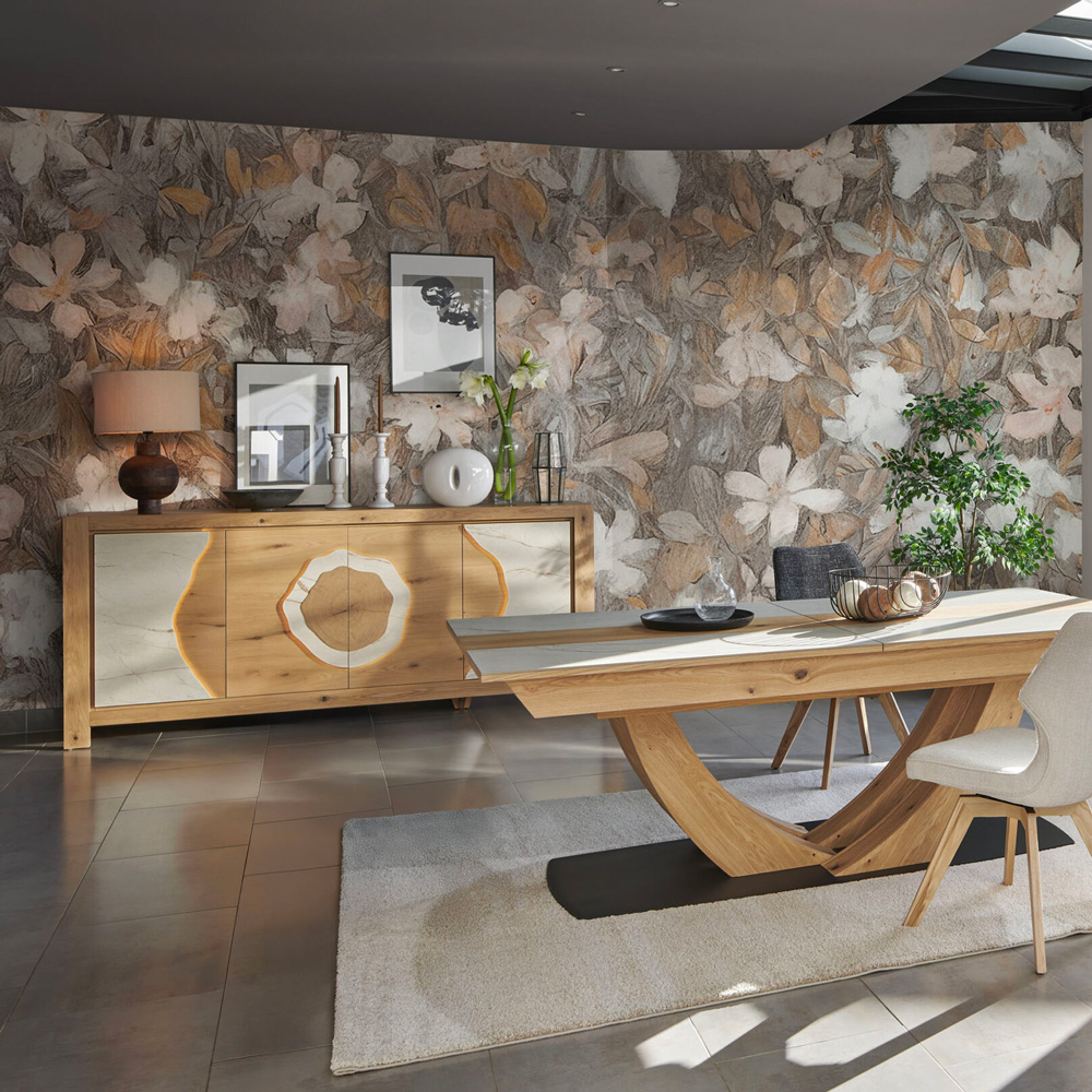 Nos créations de meubles intemporels et modernes, principalement en bois, sont réalisées au détail près.