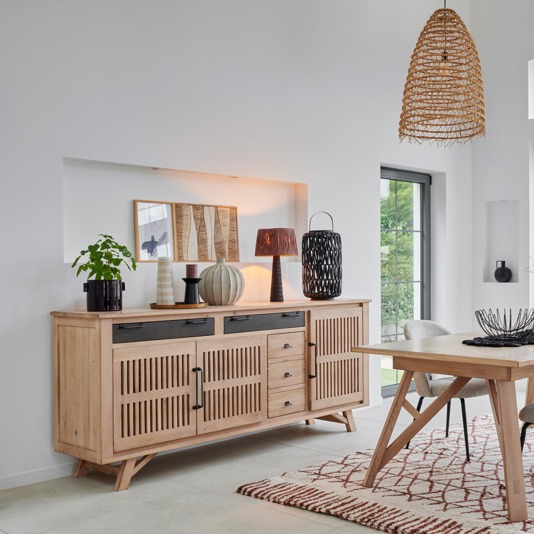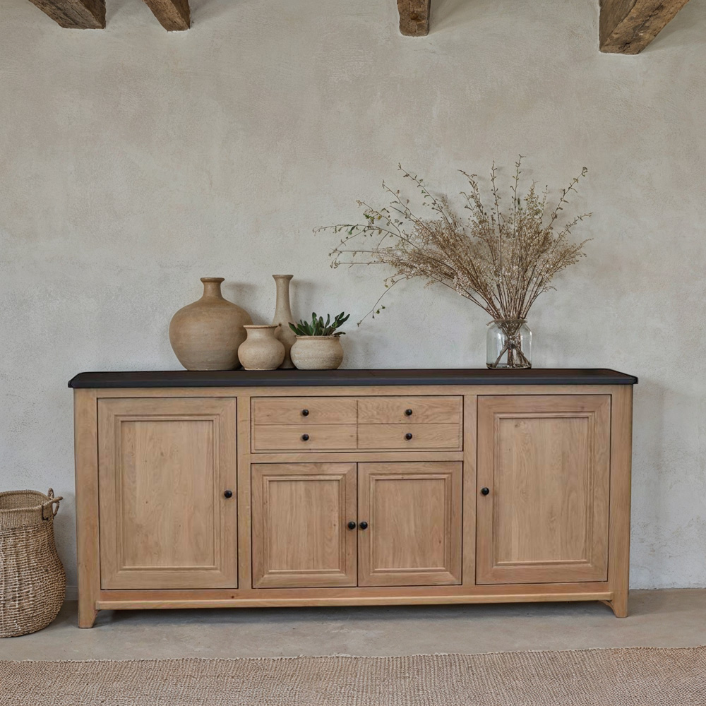 Nos créations de meubles intemporels et modernes, principalement en bois, sont réalisées au détail près.