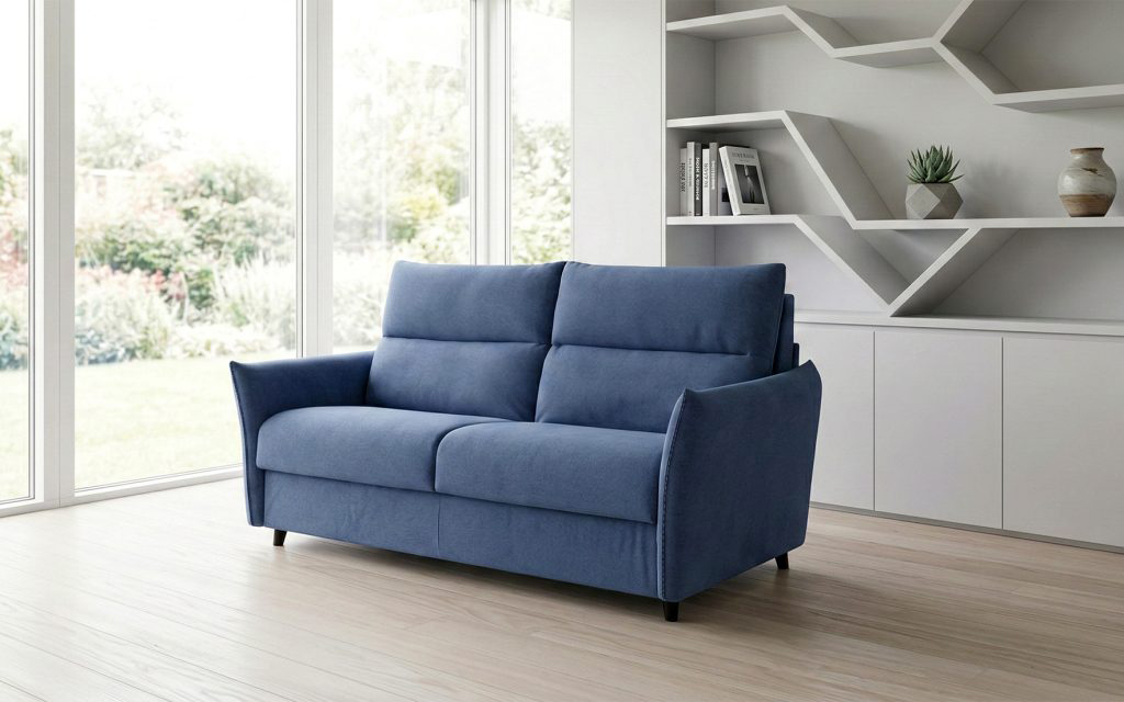 Structure métallique, accoudoirs et bandeaux en contreplaqué – Suspension sur sangles élastiques haute résistance – Garnissage assise (30 kg/m³) et dossier (21 kg/m³) en mousse polyuréthane expansé haute résilience – Sommier électro-soudé – Sangles sous les assises – Dossier range-oreillers – Ouverture par renversement du dossier sans enlever les coussins – Tissu totalement déhoussable – Pieds couleur Wengé, d’une hauteur de 8 cm – Matelas DREAM 140 x 190 H17 : âme en en mousse de polyuréthane expansé, densité 30 kg/m³, coutil 100% polyester matelassé effet « cellule » – Fabriqué en Italie.