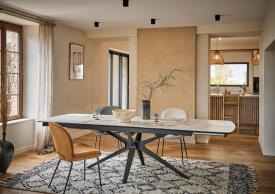 Réf. TIC40160 / TIC40180 / TIC40200 Dimensions : l 160/180/200 x h 77 x p 100 cm 1 allonge galbée de 80 cm en bout table rectangle avec allonge