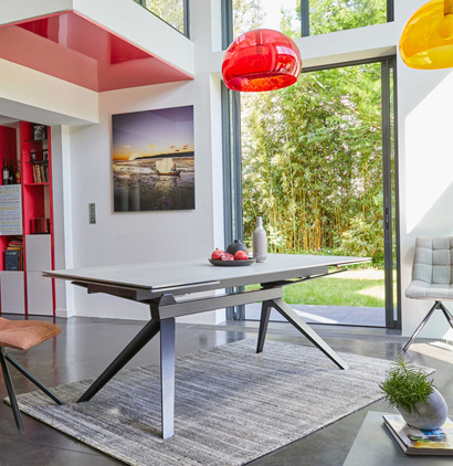 Réf. TCP30200 Dimensions : l 200/290 x h 77 x p 100 cm 2 allonges de 45 cm en bout sur coulisses TCP30180 L. 180/270 x H. 77 x P. 100 cm table avec allonge