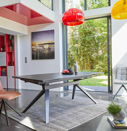 Réf. TCP30200 Dimensions : l 200/290 x h 77 x p 100 cm 2 allonges de 45 cm en bout sur coulisses TCP30180 L. 180/270 x H. 77 x P. 100 cm table avec allonge