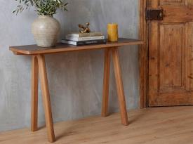 Dasras Design. Guillaume Delvigne Dimensions : l 100/120/140 x h 90 x p 40 cm Plateau bois, céramique ou stratifié Explorez la console Chevron de Dasras, une création signée du designer Guillaume Delvigne. Disponible en deux essences de bois, avec un plateau en bois, en céramique ou en stratifié, cette console se décline en trois longueurs différentes. Compacte, elle est équipée d’un tiroir ce qui en fait le choix idéal pour optimiser votre espace. Disponible en chêne et noyer us. Piètement et poutre centrale en bois massif. Plateau en bois massif, dessus céramique 3 mm collé sur mdf de 19 mm avec alèses massives ou dessus stratifié collé sur mdf de 22mm avec alèses massives