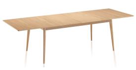 Dasras Design. Didier Versavel Dimensions : 140/.../310 x h 75 x p 90/100 cm Plateau bois ou céramique La table Paul, avec ses pieds fuselés et ses lignes épurées, offre un parfait équilibre. Disponible en deux essences de bois, avec un plateau en bois ou en céramique. Fixe ou extensible, un système de coulisses en aluminium permet d’ajouter une ou deux allonges en chêne (ou noyer) en fonction de la longueur de la table. Disponible en chêne et noyer us. Piétement, ceintures et traverse centrale en bois massif. Support de rangement des allonges en multiplis. Dessus bois : Plaqué façon massif 9/10ème sur MDF de 22 mm avec alèses en bois massif. Dessus céramique : Plaque de céramique de 6 mm collée sur MDF de 19 mm avec alèses en bois massif. Allonges de service plaquées bois, rangées dans la table. Ouverture centrale SCA (synchronisée, coulisses en aluminium). table extensible