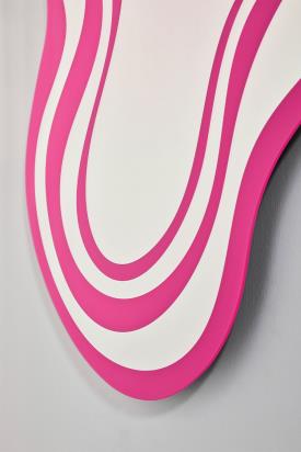 Inspiré par la beauté éphémère des nuages et leur mouvement constant, NIMBUS PINK est une fusion poétique de forme et de fonction. Les alternances de bandes argentées et colorées évoquent la fluidité des nuages flottants, produisant un effet visuel rythmique et presque méditatif. Nimbus apporte une touche de surréalisme à l’espace, idéal pour un couloir, une salle de bain ou tout intérieur cherchant fluidité et optimisme.