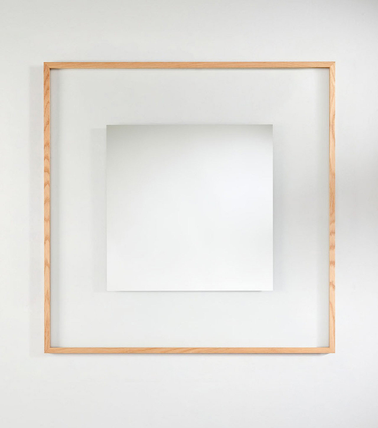 Le cadre en chêne symétrique rappelle l’équilibre et les proportions des cadres traditionnels. La surface argentée est posée avec précision, laissant passer la lumière à travers le verre clair et donnant l’impression que le miroir flotte. La séparation transparente entre le miroir et le cadre devient une zone neutre, permettant au regard de se concentrer uniquement sur le reflet.