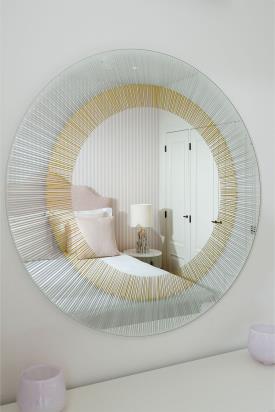 Un miroir rayonnant et sympathique, créé avec notre expertise en sérigraphie appliquée sur les parties transparentes et miroitées. Les miroirs ronds sont très à la mode. Ce miroir au diamètre de 105 cm référant au soleil tire bien l'attention d'un manière agréable et chaleureux. Des rayons de soleil dans une composition concentrique encadrent le miroir central. La couleur bronze imprimée derrière les rayons crée l'accent chaleureux. Yoko est le mot japonais pour soleil.