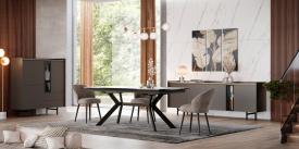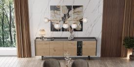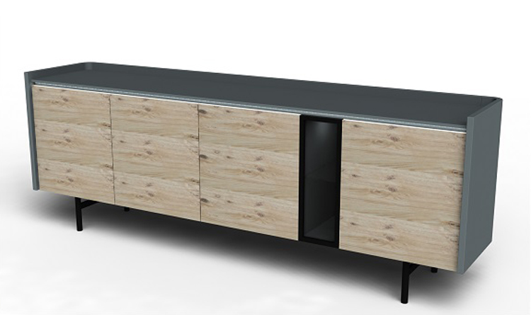 Movis Dimensions : l 200/220/240 x h 83 x p 50 cm Le modèle Seattle présente des côtés légèrement arrondis à l’arrière et comporte 4 portes, dont l’une possède une section en verre gris qui simule une niche intérieure. buffet