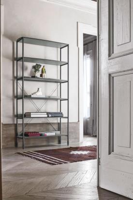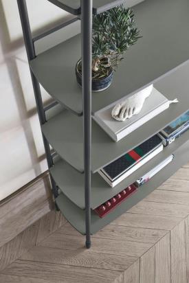 Tomasella Dimensions : l 104 x h 165 x p 34 cm Finitions photo / bibliothèque Tall Ink avec étagères en CDF basalte et structure métallique anthracite 160. Ce meuble reste intemporel : livres et objets trouvent leur place sur des étagères parfaitement intégrées à sa structure. Les panneaux arrière bas lui confèrent style et une sensation de protection. Structure disponible uniquement en anthracite