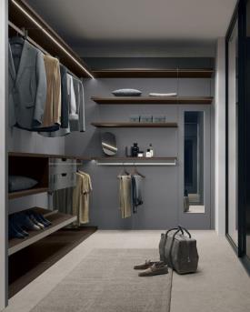 Tomasella Dimensions : l 225/324 x h 255 x p 54 cm Le dressing est un espace alliant style et fonctionnalité : chaque détail est soigneusement pensé, des finitions aux accessoires en passant par l’éclairage. Le système de penderie à fentes offre une grande liberté d’agencement et s’adapte parfaitement aux besoins de chacun. Le dressing se transforme en un meuble d'exception grâce aux panneaux muraux imprimés sur lesquels on peut fixer étagères et autres accessoires à volonté. L'îlot central complète l'esthétique et la fonctionnalité de cet espace.