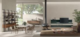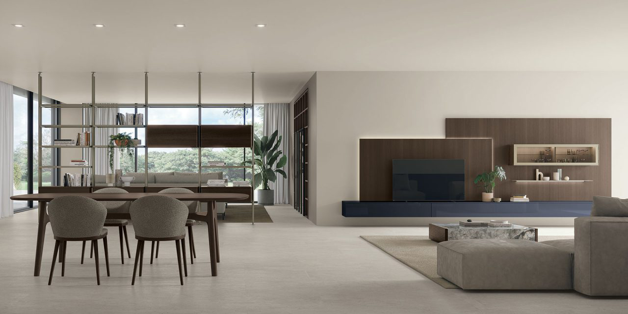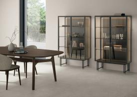 Dimensions : l 240 x h 76 x p 120 cm Structure et plateau en bois de moka. Travertin clair mat, plateau en grès cérame élégant, structure en bois cognac. table