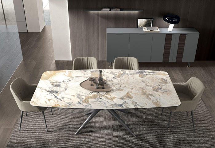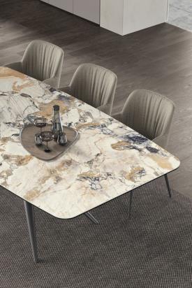 Dimensions : l 220 x h 77 x p 120 cm table avec plateau en grès cérame étoile symphonie cat. élégance, structure en métal anthracite 160.