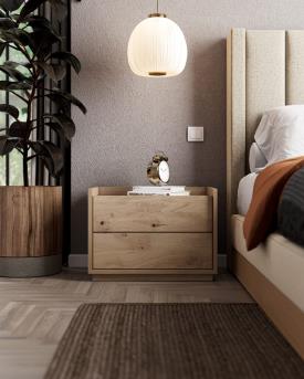 Gardez tous vos biens essentiels de repos à proximité. Avec le chevet essence, vous ne manquerez pas d'espace pour ranger tout ce dont vous avez besoin. Des lignes simples et modernes qui s'adaptent à n'importe quelle chambre et souligne le bois rustique. Elle contient 2 tiroirs à fermeture douce.